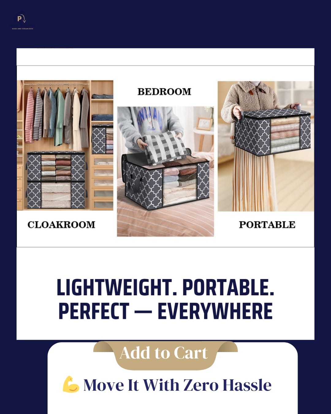 A spacious, foldable storage bag for clothes, bedding, and more — perfect for organizing your closet while saving space. Durable, lightweight, and easy to carry.