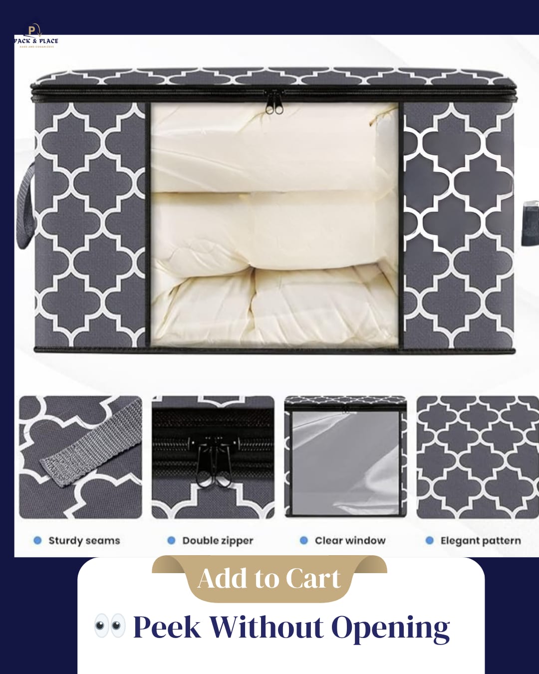 Declutter your home the smart way with this  Multi-Purpose Closet Organizer Bagdesigned to store clothes, blankets, bedsheets, towels, or seasonal items in a neat, dust-free manner.